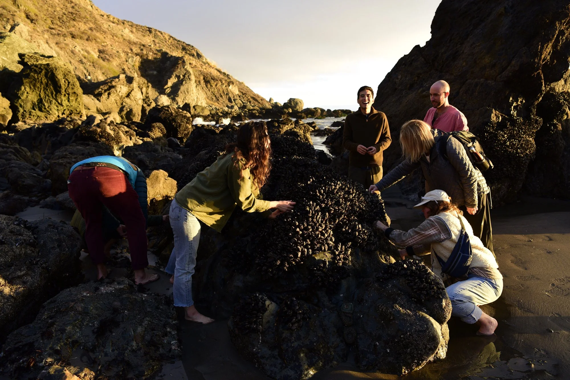 walking tide pools, harvesting mussels by hand, and cooking over an open flame.